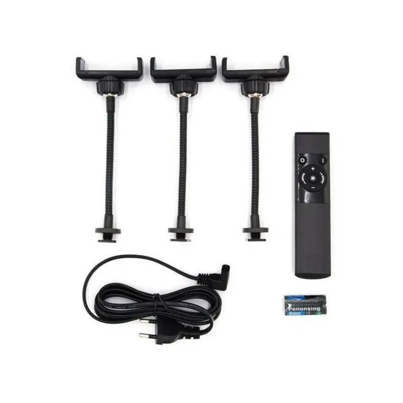 ملحقات إضاءة حلقة جماري : مشبك الهاتف، ومقبض التعديل، ومنفذ الشحن