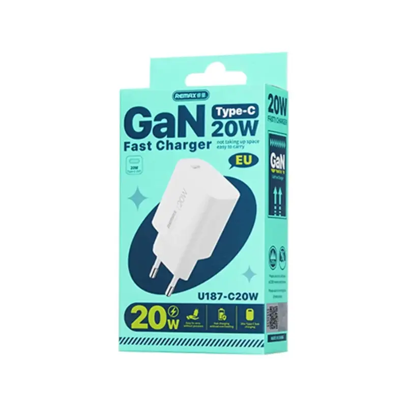 ريماكس U187-C20W راس شاحن سريع تايب سي GaN بقوة 20 واط – ابيض
