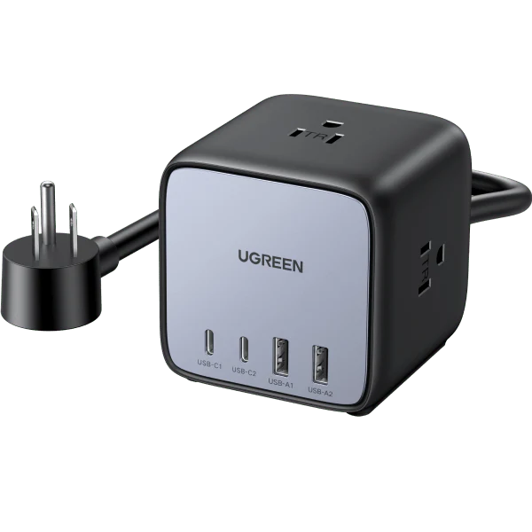 من أهم ميزات مكعب UGREEN DigiNest قدرة الشحن السريع بقوة 65 واط. بفضل تقنية GaN (نيتريد الغاليوم) المتطورة، يوفر طاقة أكبر بحجم أصغر. منفذ USB-C واحد يشحن أجهزة الكمبيوتر المحمولة مثل MacBook Air وMacBook Pro وغيرها من أجهزة الكمبيوتر المحمولة المزودة بمنفذ USB-C بأقصى سرعة. لم تعد بحاجة إلى حمل شواحن أجهزة كمبيوتر محمولة ضخمة، فهذا المكعب يُشغّلها جميعًا بكفاءة.