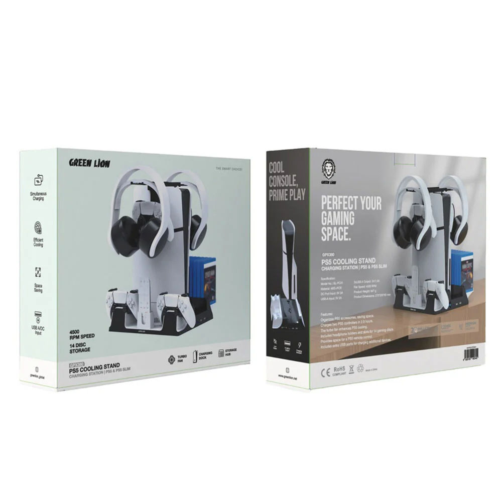 The Green Lion PS5 Cooling Stand with Controller Charger is more than a simple accessory — it’s the ultimate upgrade for your PlayStation setup. With its powerful cooling system, dual charging dock, and sleek organizational design, it ensures your console performs at its best while keeping your gaming area neat and professional. Easy to install, safe to use, and compatible with both PS5 and PS5 Slim, it’s the perfect companion for gamers who want reliability, efficiency, and style in one complete package.