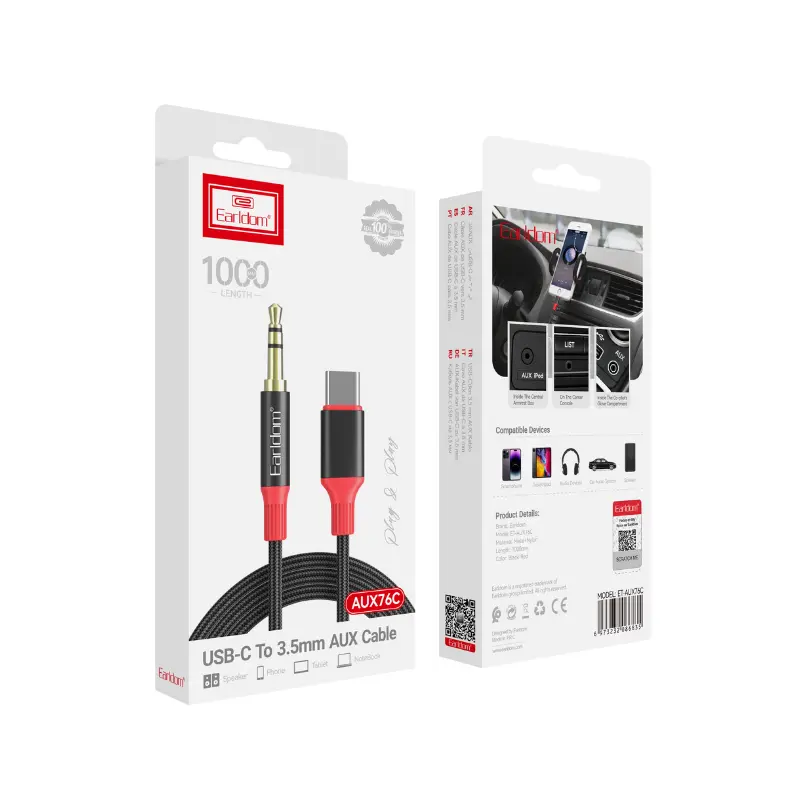 With the Earldom AUX76C, you can enjoy professional-level sound quality wherever you are. This Earldom AUX CABLE ensures clear, distortion-free audio output, preserving the original sound details for a rich listening experience. Ideal for music, podcasts, or movies, this aux cable supports surround sound and deep bass, allowing you to unleash the full magic of your music. Whether you’re connecting to a car stereo or high-end headphones, this USB-C cable delivers stable and balanced performance every time.