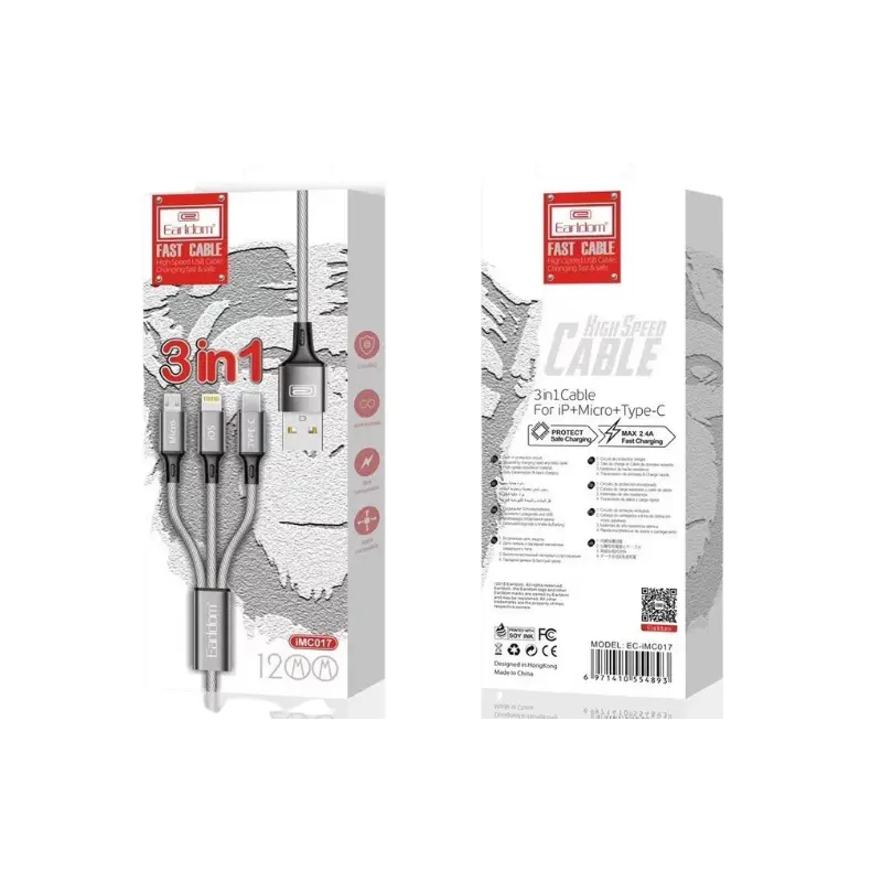 ايرلدوم IMC017 كابل يو اس بي سريع 3 في 1 – اسود