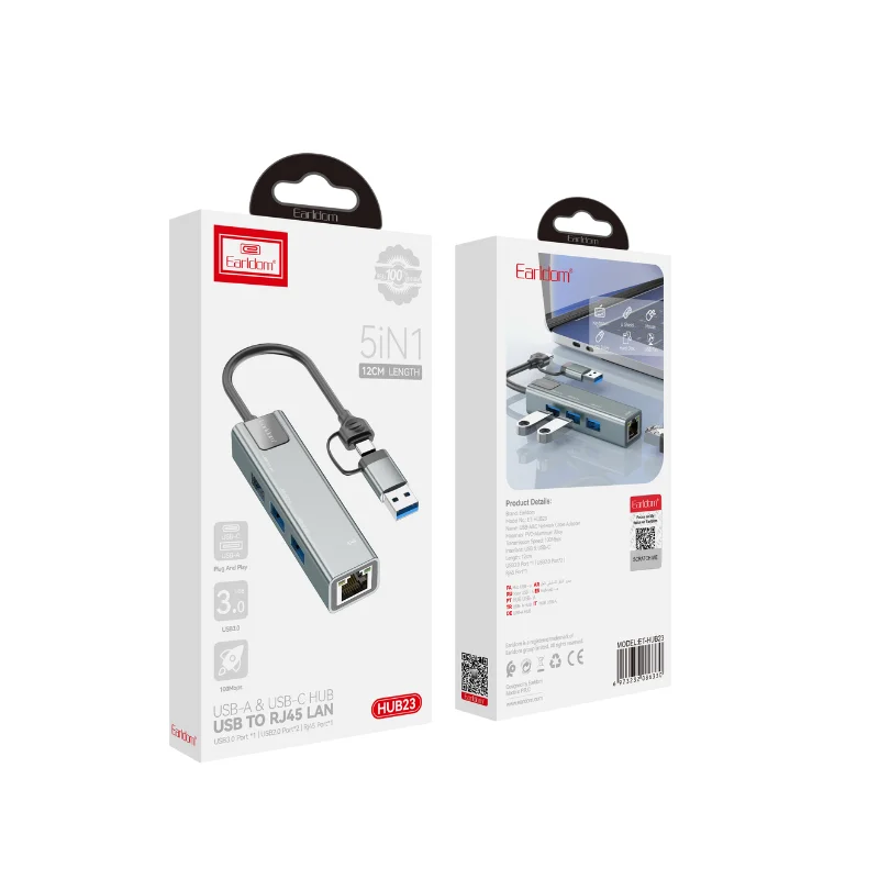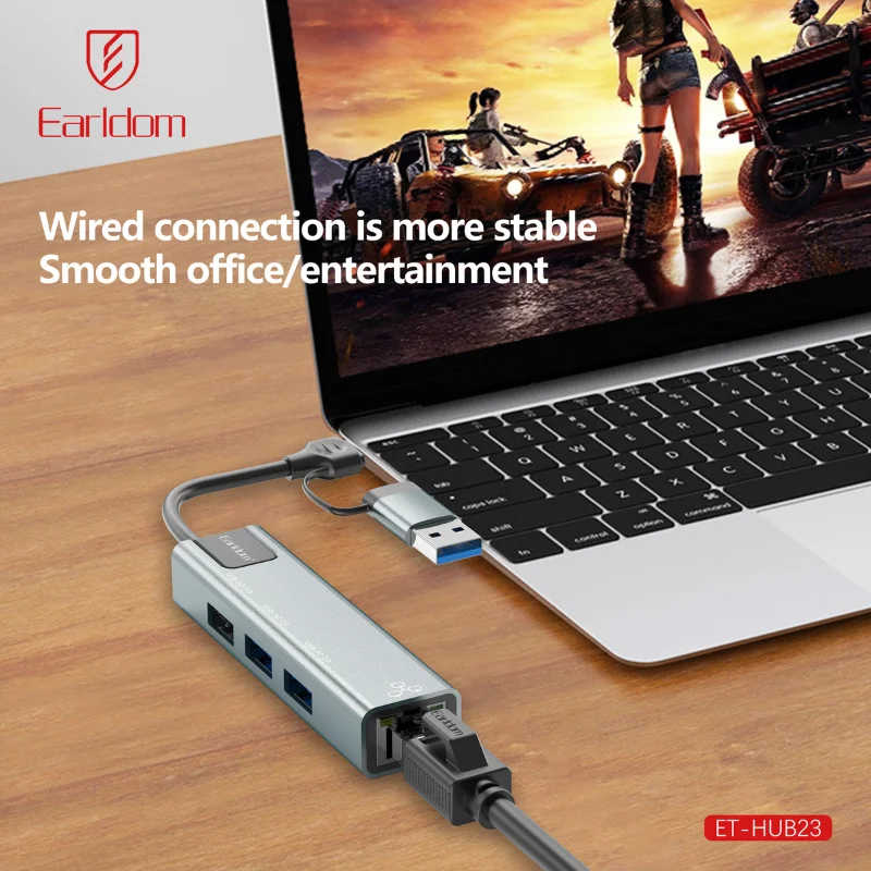 Earldom ET-HUB23 multifunction 5-in-1 USB HUB with USB-A, USB-C, and RJ45 LAN support