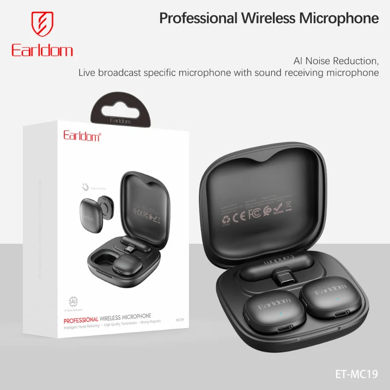 Earldom ET-MC19 wireless microphone featuring USB-C connection and high-fidelity sound.