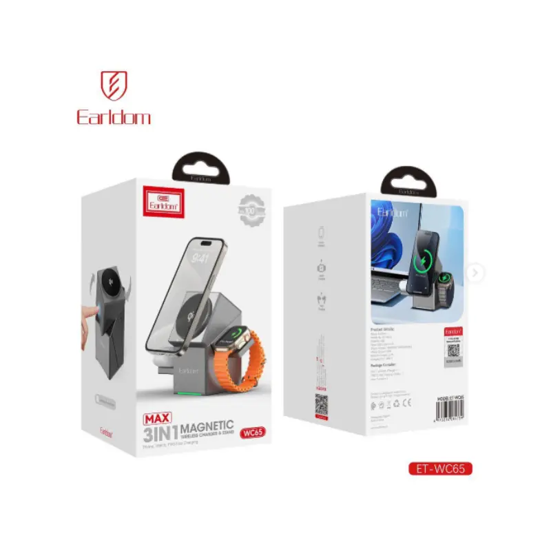 The Earldom ET-WC65 brings advanced convenience to everyday power needs, offering a modern solution for users who depend on multiple devices. This model functions as a complete Wireless Charger system that keeps your essentials powered throughout the day. As an Earldom Wireless Charger, it blends elegant design with practical functionality, making it ideal for home or office setups. Its ability to work effortlessly as a wireless charger phone accessory enhances flexibility for smartphone users seeking cable-free charging. With efficient inductive technology, this device provides all the benefits you expect from a premium wireless charger.